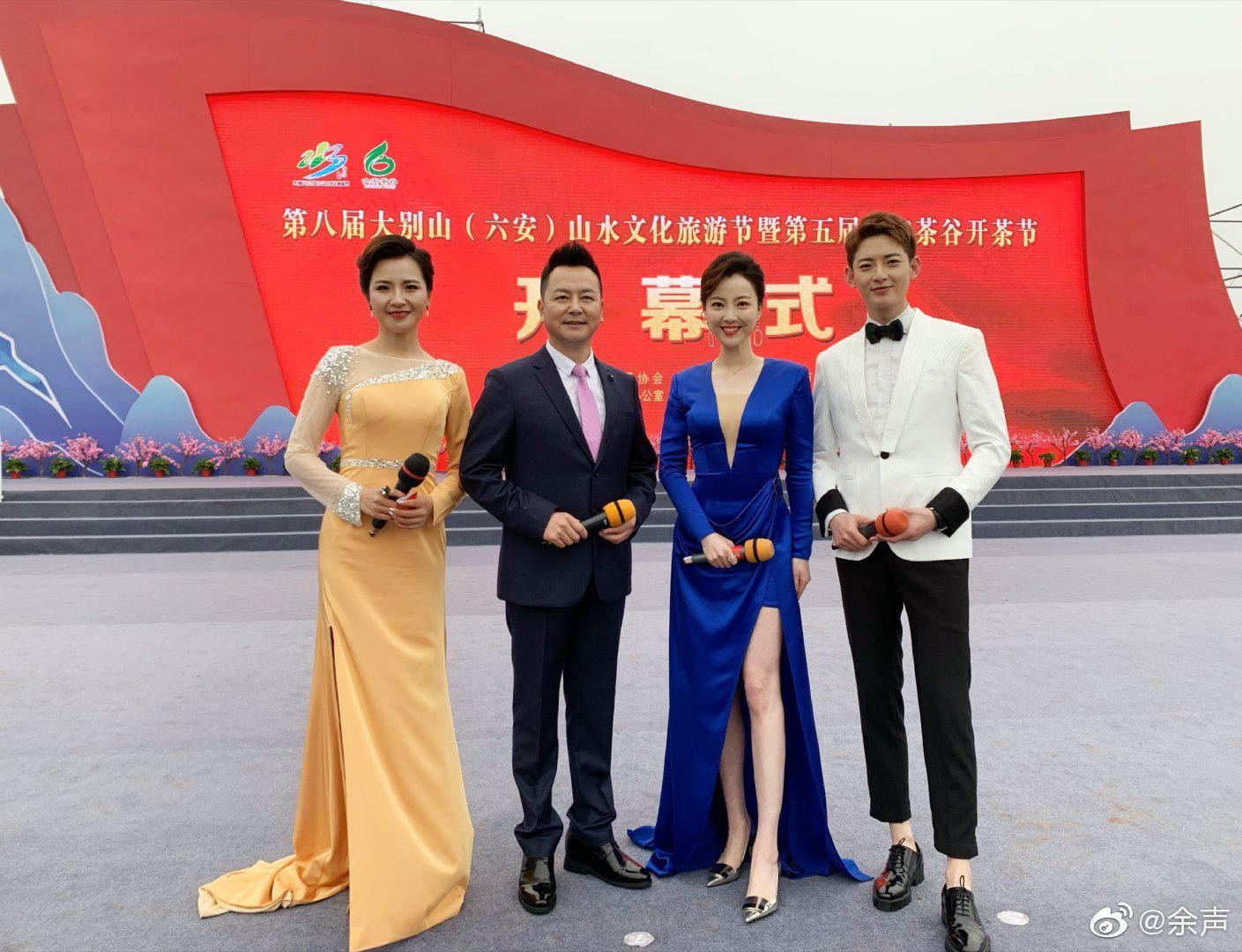 从专业角度来看,余声的此次造型与其主持人身份高度契合。在公开场合,主持人的形象需兼顾亲和力与权威感,而深色系服饰往往能传递出稳重与专业的信号。蕾丝元素的加入则柔化了黑色的严肃感,注入了几分柔和与女性特质,使其在与嘉宾或观众互动时更易拉近距离。高跟鞋的选择不仅提升了身高气场,更强化了站姿的挺拔感,这对于需要长时间站立主持的她而言,无疑是兼具美观与实用的考量。