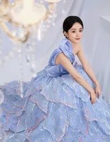 赵丽颖的背影窈窕而富有韵味,单肩设计展露光滑美背,层叠的裙摆铺陈开来,宛如一朵在夜色中静谧盛放的蓝玫瑰。